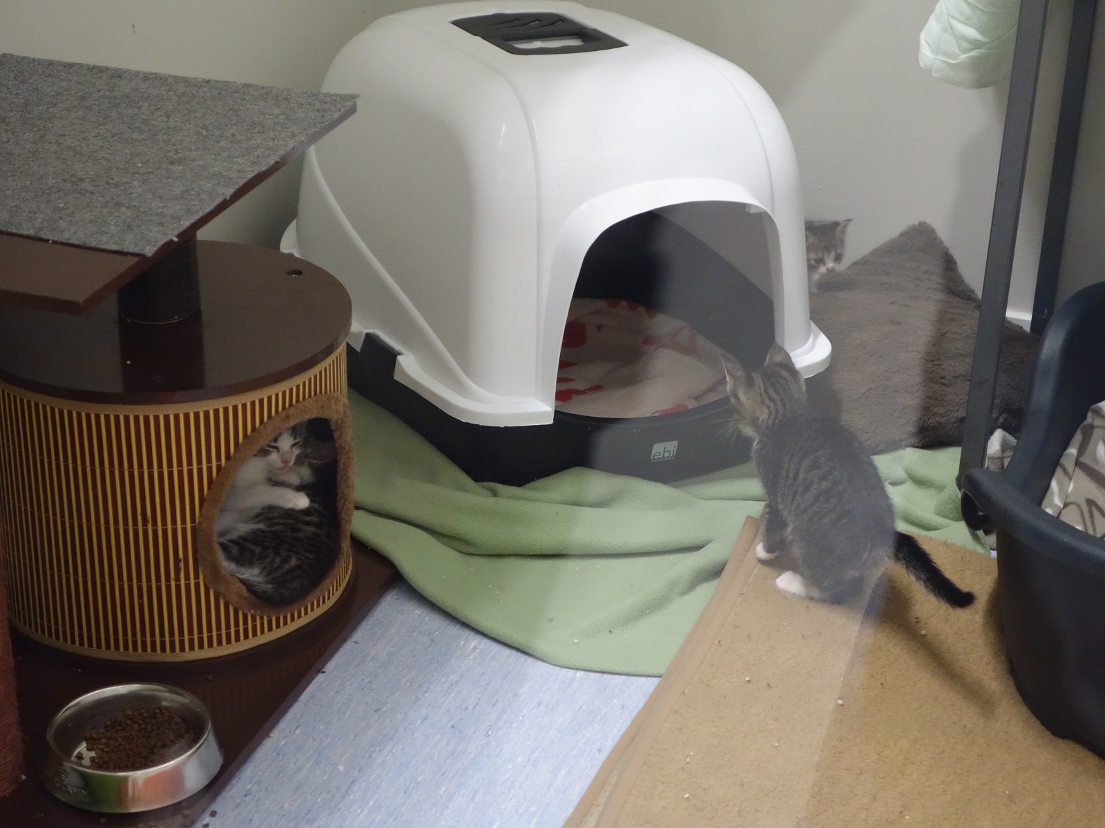 Päätimme yhdessä, että meille tulee kissa. Olin kuullut ja lukenut kotia tarvitsevista kissoista ja näin päädyimme ottamaan yhteyttä Kissakoti Kattilaan. Saapuessamme se oli kuin olisi tullut kissojen ihmemaahan. Olimme kaikki häkeltyneitä nähdessämme monia kymmeniä kissoja, jotka odottivat kotiin pääsyä. Meidät ohjattiin huoneeseen, jossa kissoilla oli omat tilansa. Tutustuimme kahteen arempaan tyttökissaan, jotka tarvitsivat yhteisen kodin. Silittelimme heitä, mutta sitten alapuoleltamme alkoi kuulumaan naukumista. Kaunis poikakissa puski itseään ovea vasten ja saadessaan huomiota tuli vain iloisemmaksi. Lopulta tyttökissojen silittely jäi, kun ”alakerran naapuri” varasti huomiomme.