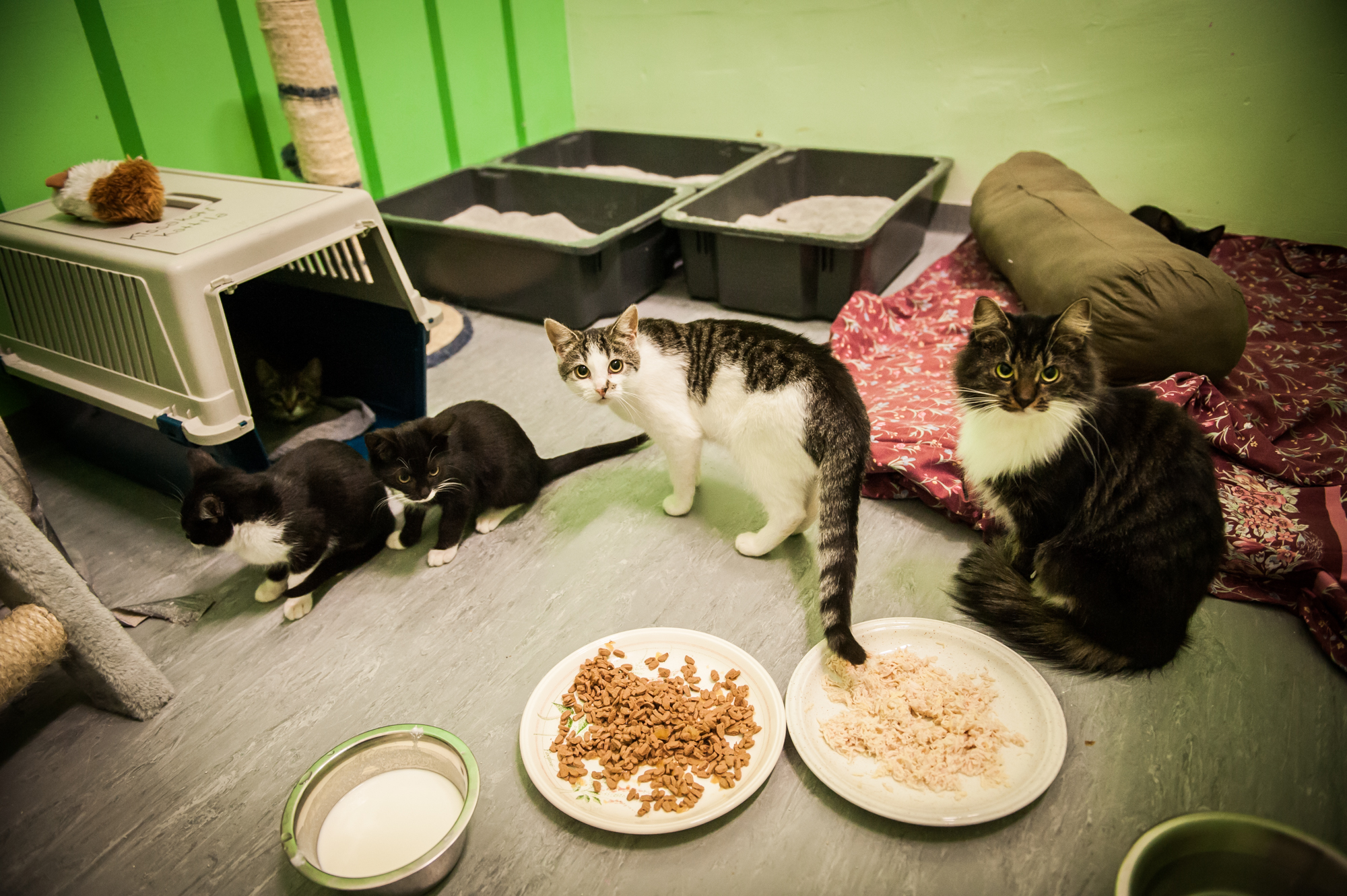 Kello lähestyy kahta. Pöytään kannetaan kissanruokaa: purkkeja ja pusseja. Alkaa Kattilan odotetuin hetki. Lautanen toisensa perään täytyy märkäruoasta. Koska Leevi sai pari päivää sitten kodin, saamme työskennellä tänään ilman että nelijakainen laaduntarkastaja kävelee pöydällä tutkimassa puolivalmiita lautasia. Päivittäin ruokaa, sekä märkäruokaa että raksuja, kuluu yhteensä n. 20 kg. Eli n. 600 kg kuukaudessa.