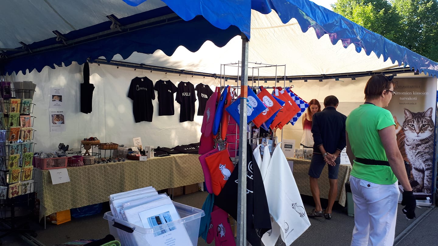 Meillä kävi sankoin joukoin vieraita ja arpapöytää pitikin täydentää tiuhaan tahtiin. Kiitos kaikille, jotka pysähtyivät teltallemme ostoksille. Kiitos kaikille, jotka tulivat kertomaan meille kissakuulumisia ja erityisesti niille, jotka uskaltautuivat tulla kyselemään toiminnastamme.