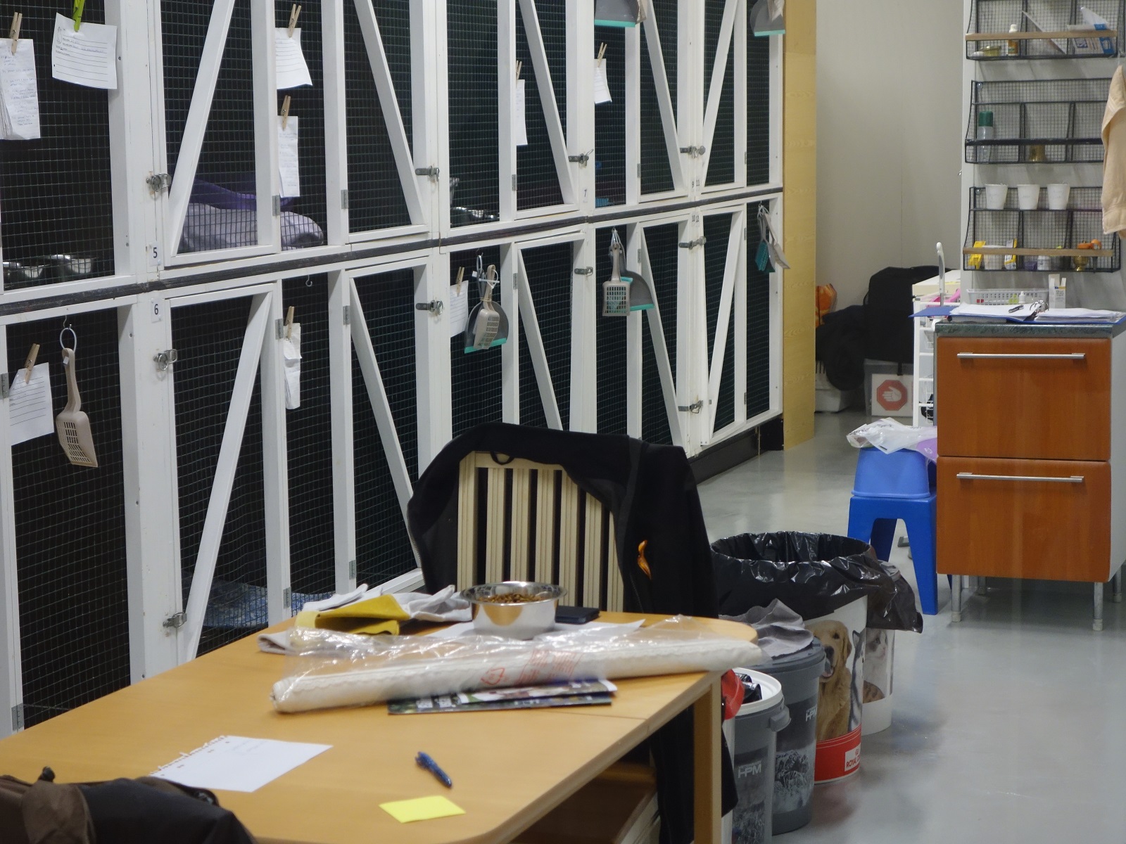 Ensimmäisenä muuttaa meidän eristysosasto eli se paikka, johon kissat tulevat ensin tarkailtavaksi ja jossa terveysasiat hoidetaan kuntoon. Tämä muutto on 18.-19.9. Tuolloin siirtyy mm. häkkielementtejä, pakastimia ja eristyksen tarvikkeet.