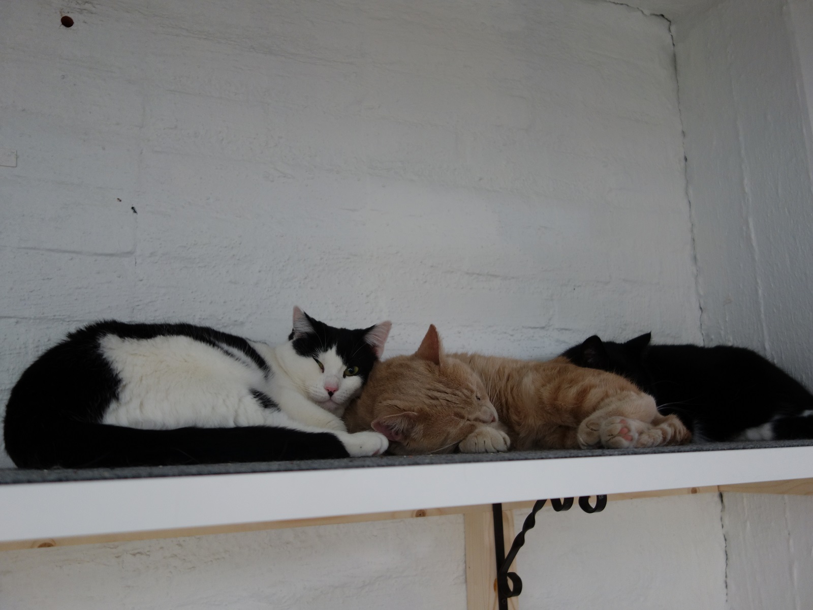 Vieraita oli vastassa uutuuttaan hohtavat tilat, jotka olisi tyylikkyydellään kelvanneet vaikka sisustuslehteen. Kaikki tassuttelijat oli saatu siirrettyä uusiin tiloihin ongelmitta. Vaikutti siltä että meidän pitkäaikaisasukkaatkin (Nuppu, Musu, Kiukku-Kalervo ja Rehti) olivat saaneet lisää virtaa muuton myötä. Sitä vauhtia vipellettiin, että lonkkavaivat ym. tuntuivat muutossa hävinneen. Talossa on nyt vajaa 40 aikuista kissaa ja pari huoneellista pentuja.